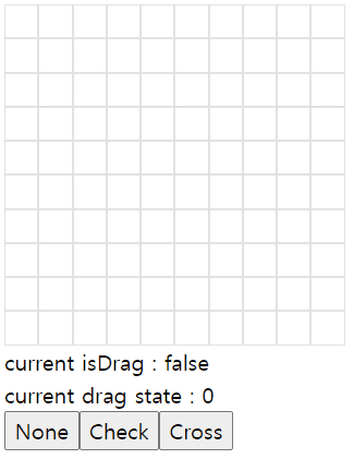 노노그램에서는 CHECK, CROSS, NONE을 선택하고 드래그하면 그 state로 바꾸는 기능이 있다.