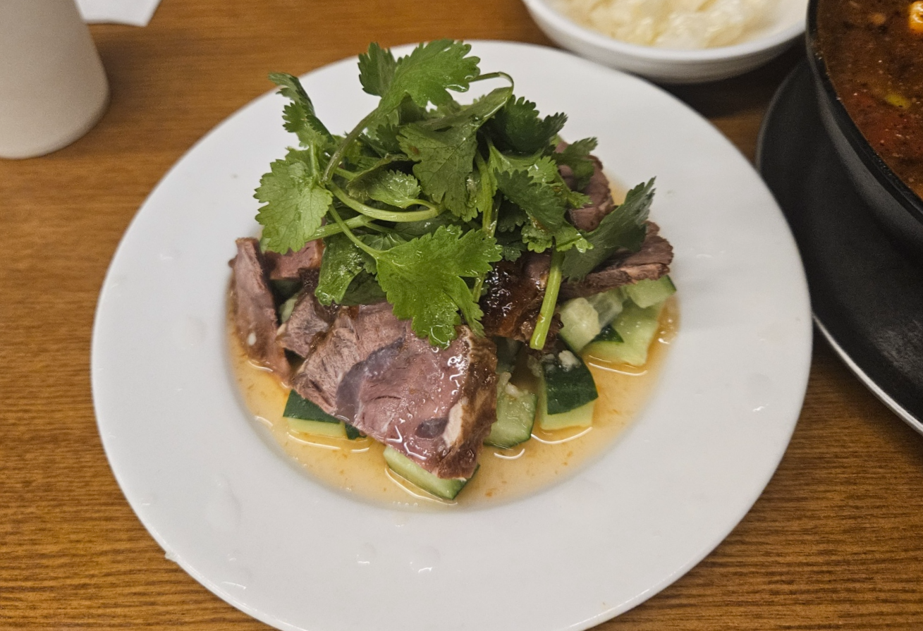 고기는 아롱사태라는데 부들부들하고 새콤달콤한 냉족발 느낌.