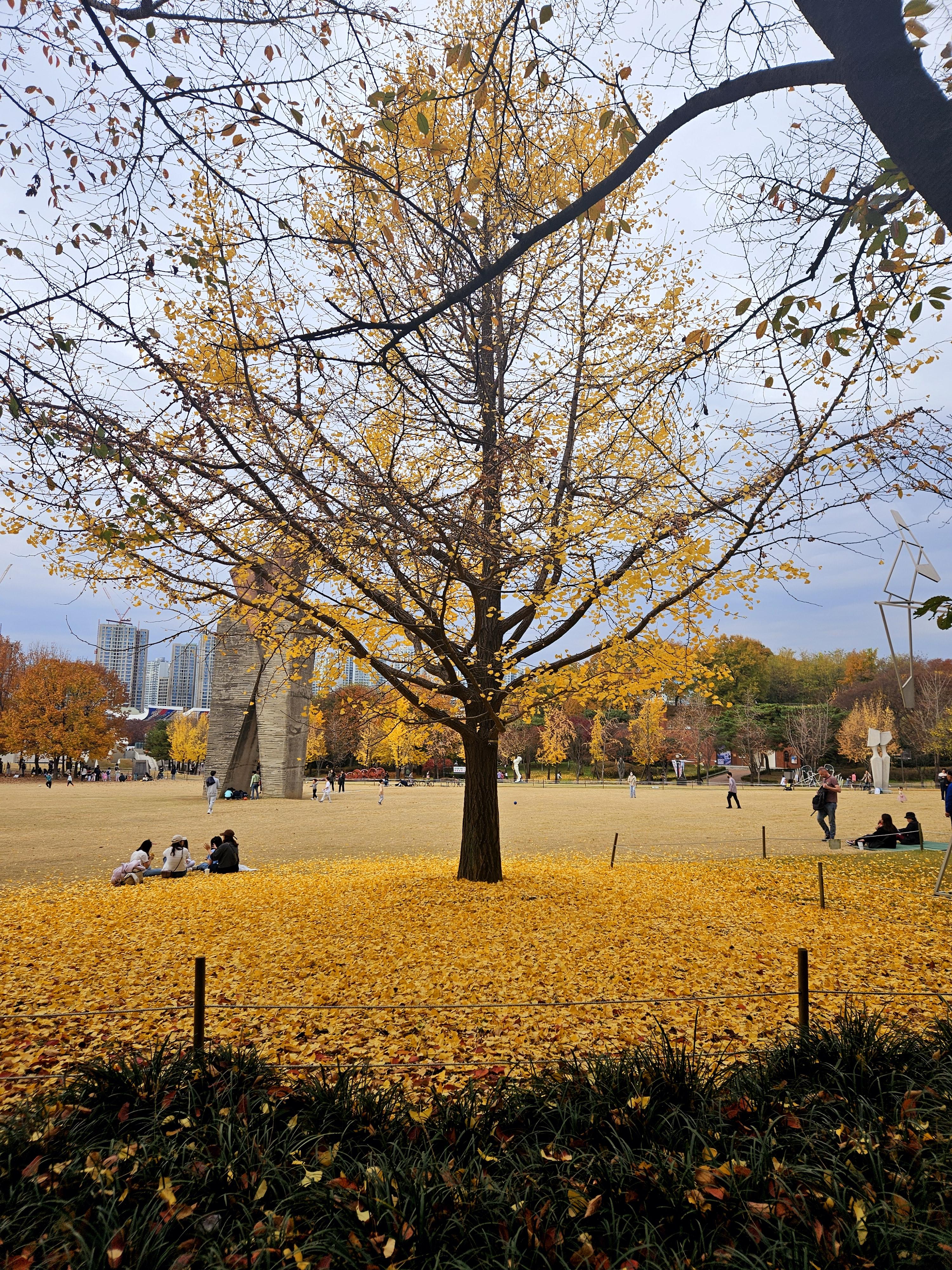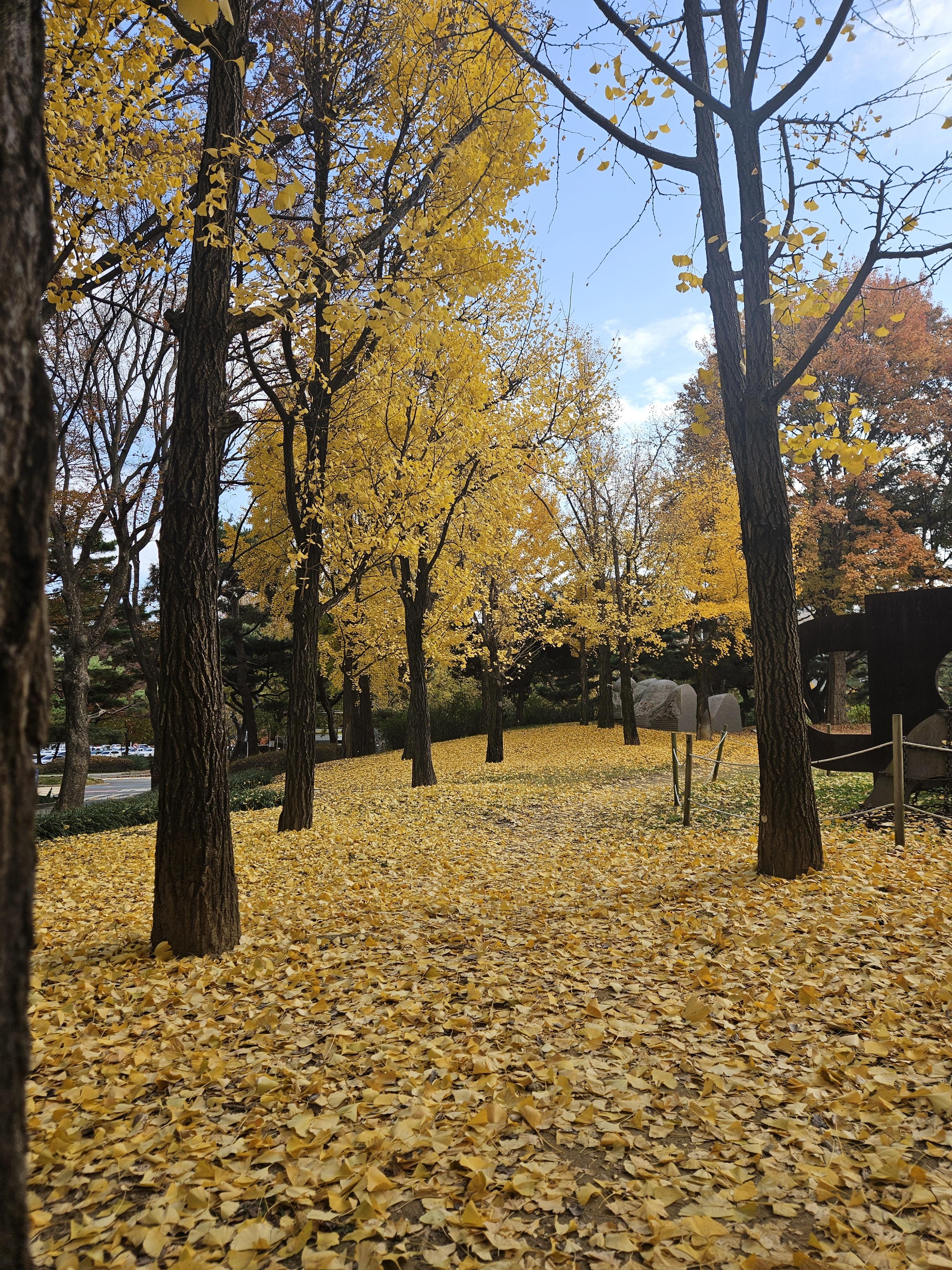 졸라큰 오브제가 있는 평지에 아주 이쁘게 은행나무가 서있었다.