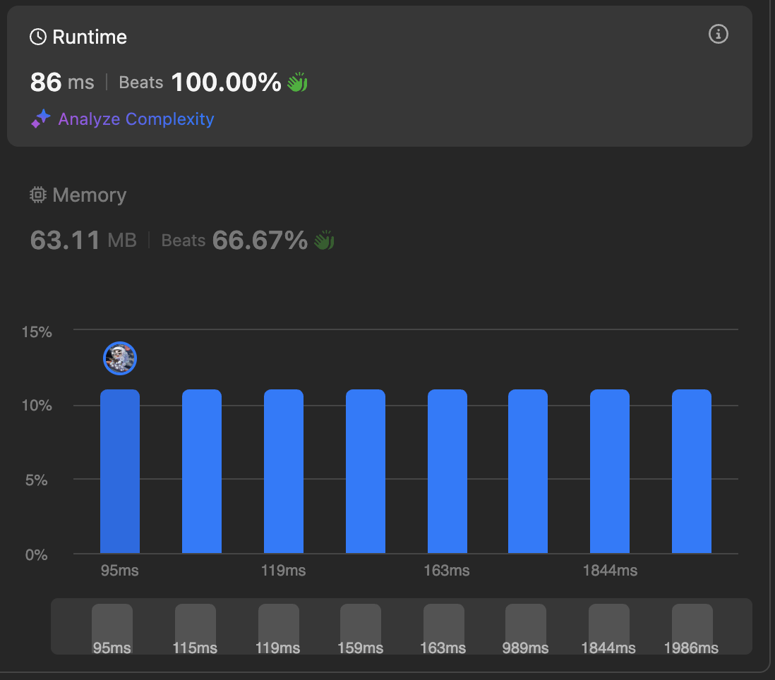 - 마지막에 Map()인 memo를 만든다면 속도 100% 달성 가능하다. 아니면 70%대