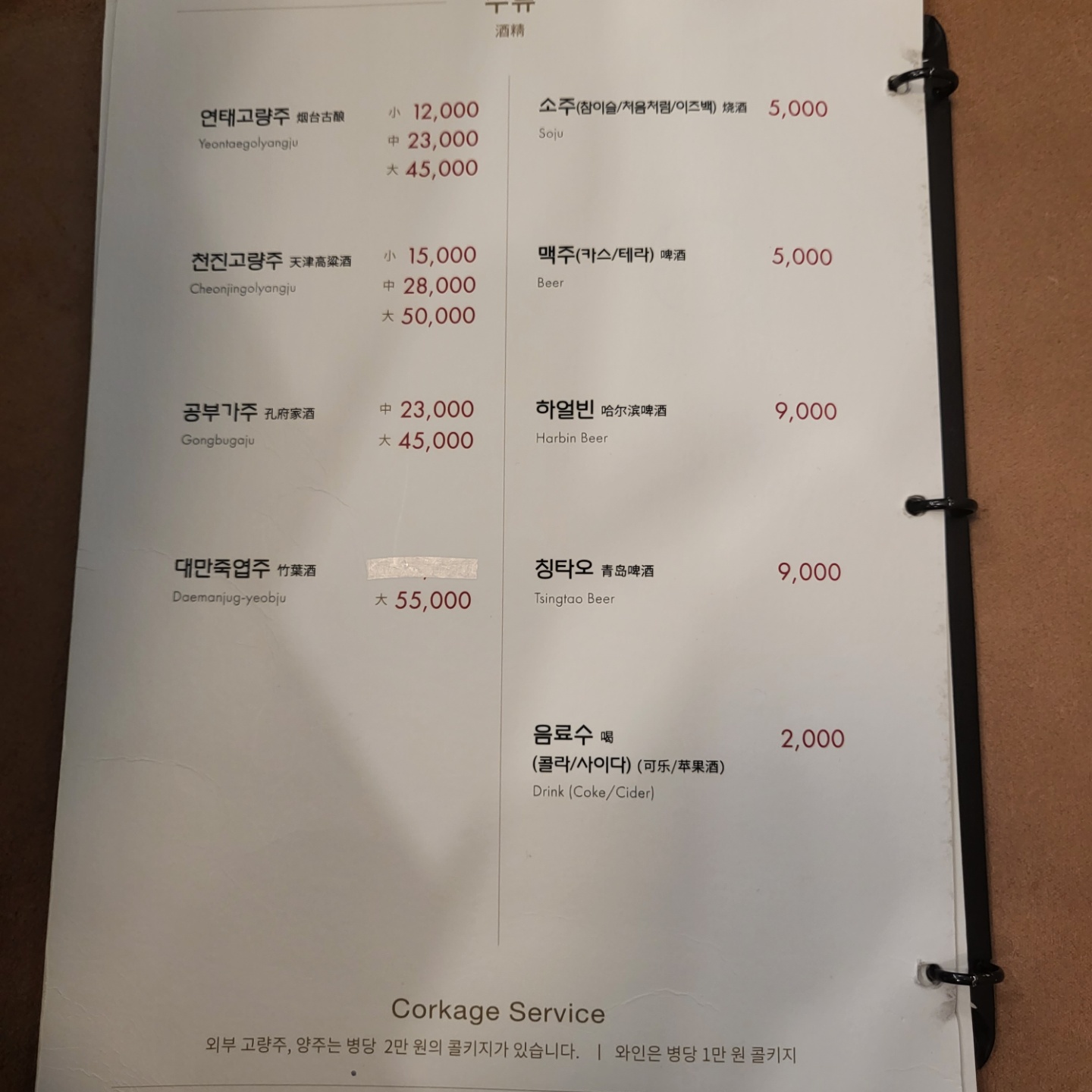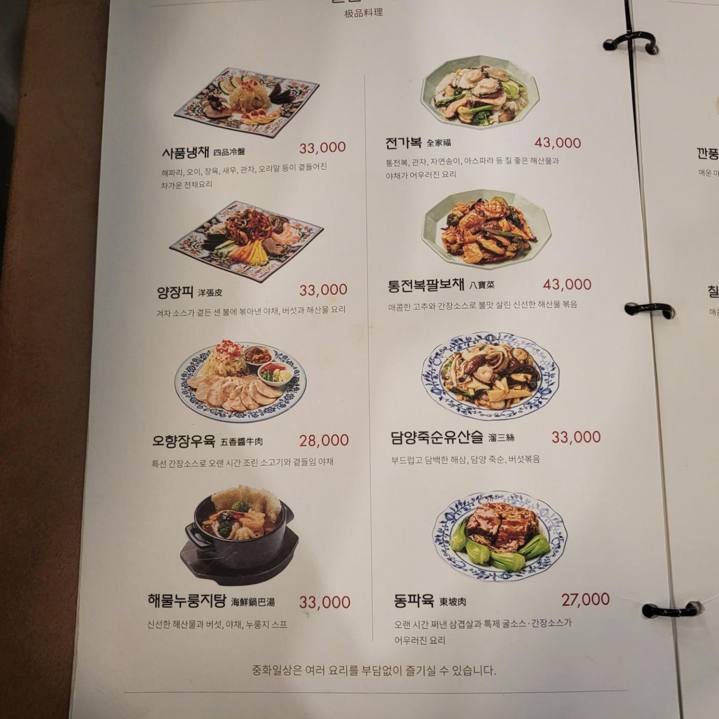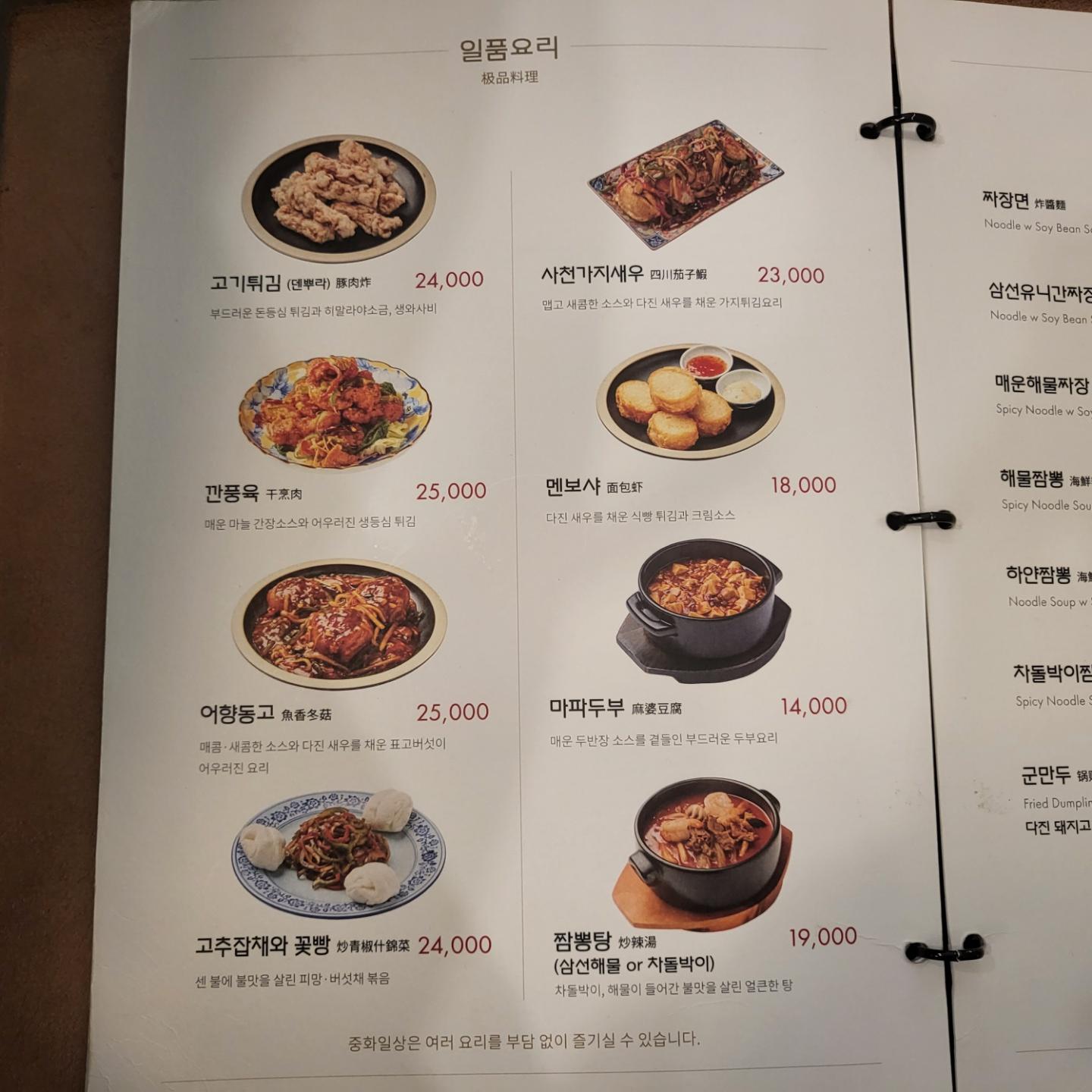 식사 가격들은 만원초반대이고 기본 짜장은 7천원이다. 동네 물가에 비하면 비싸진 않고 적당하다.