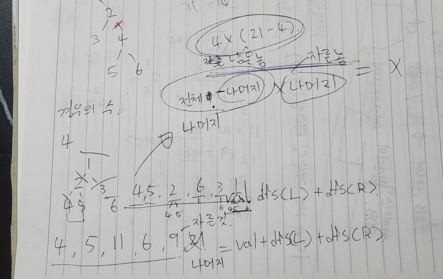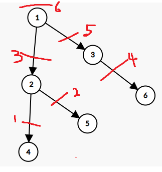 - 예제1로 설명하자면 [1, 2, 3, 4, 5, 6]를 DFS로 돌려서 [4, 5, 2, 6, 3, 1] 순서로 서치한다.