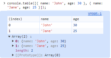 2. console.table()