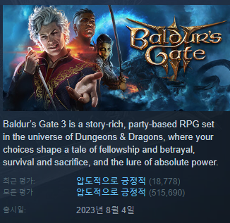 무려 51만명의 압도적으로 추천하는 게임